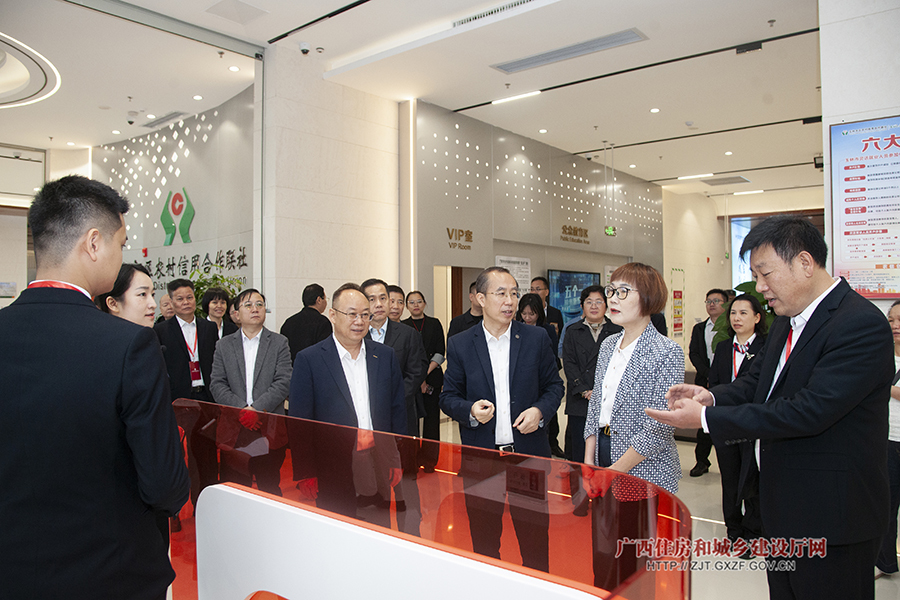 会前,于斌一行到玉林市住房公积金管理中心与商业银行共同设立的广西首家住房公积金好服务旗舰店考察调研,并参加揭牌仪式。