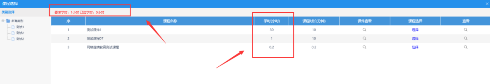 进入“选课管理”进行选课。根据提示选择所有继续教育课程。可点击“课件查看”和“查看”查看课件信息(需选够计划要求学时,学完才可进行能力测试)。