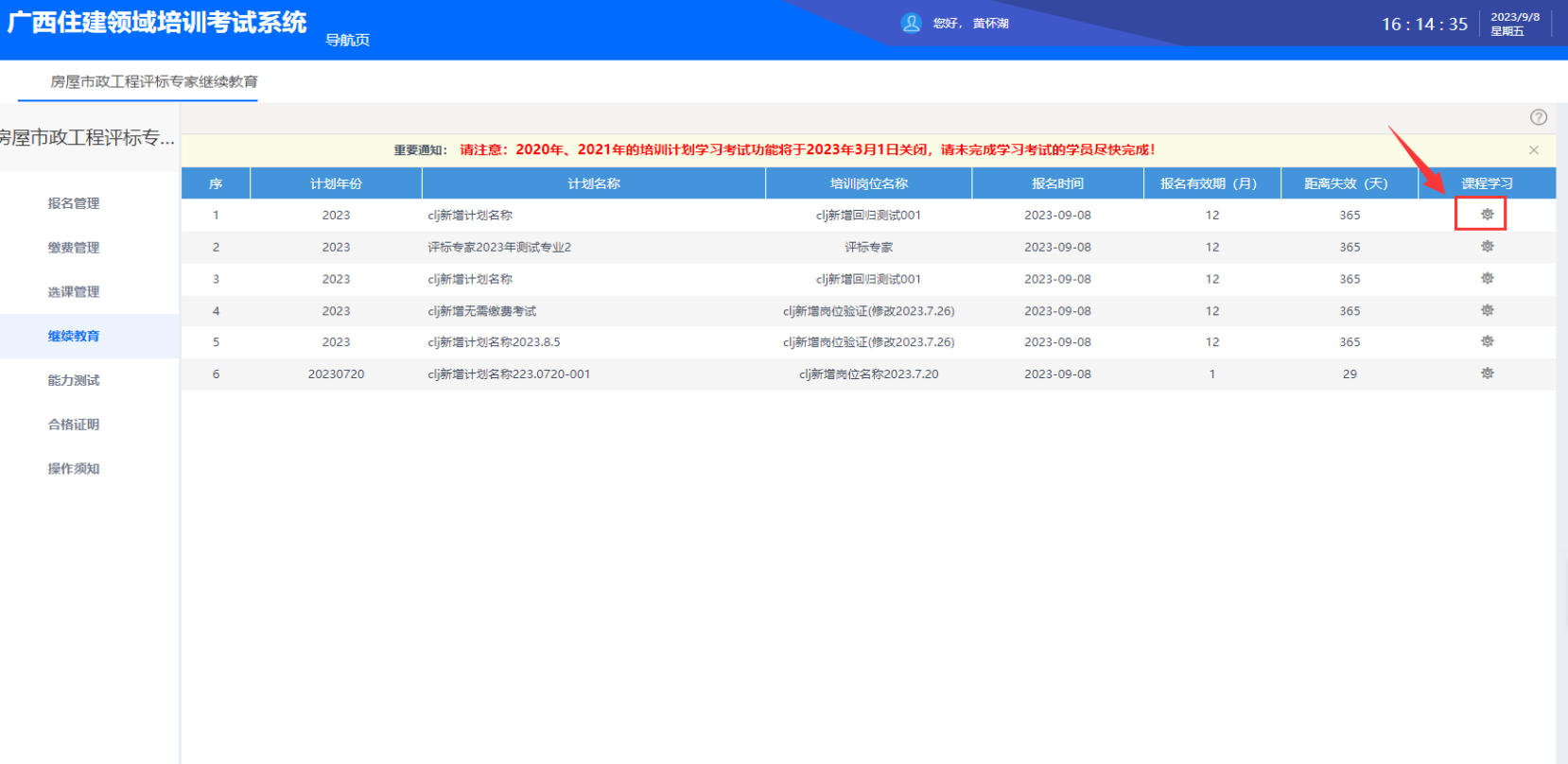 选择“房屋市政工程评标专家继续教育”模块。