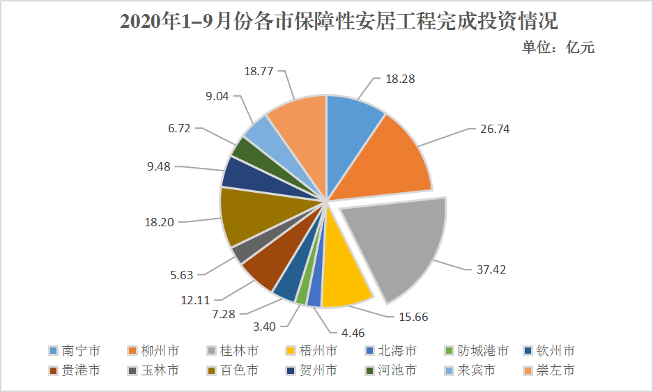 (二)全区棚户区改造项目基本建成情况。2020年,国家下达我区棚户区(危旧房)改造基本建成目标任务为3.56万套。截至9月底,已基本建成7.95万套,超额完成年度任务。但部分设区市建设进度依旧较慢,基本建成任务完成比率较低,如北海市(48.82%)基本建成率未达到50%。