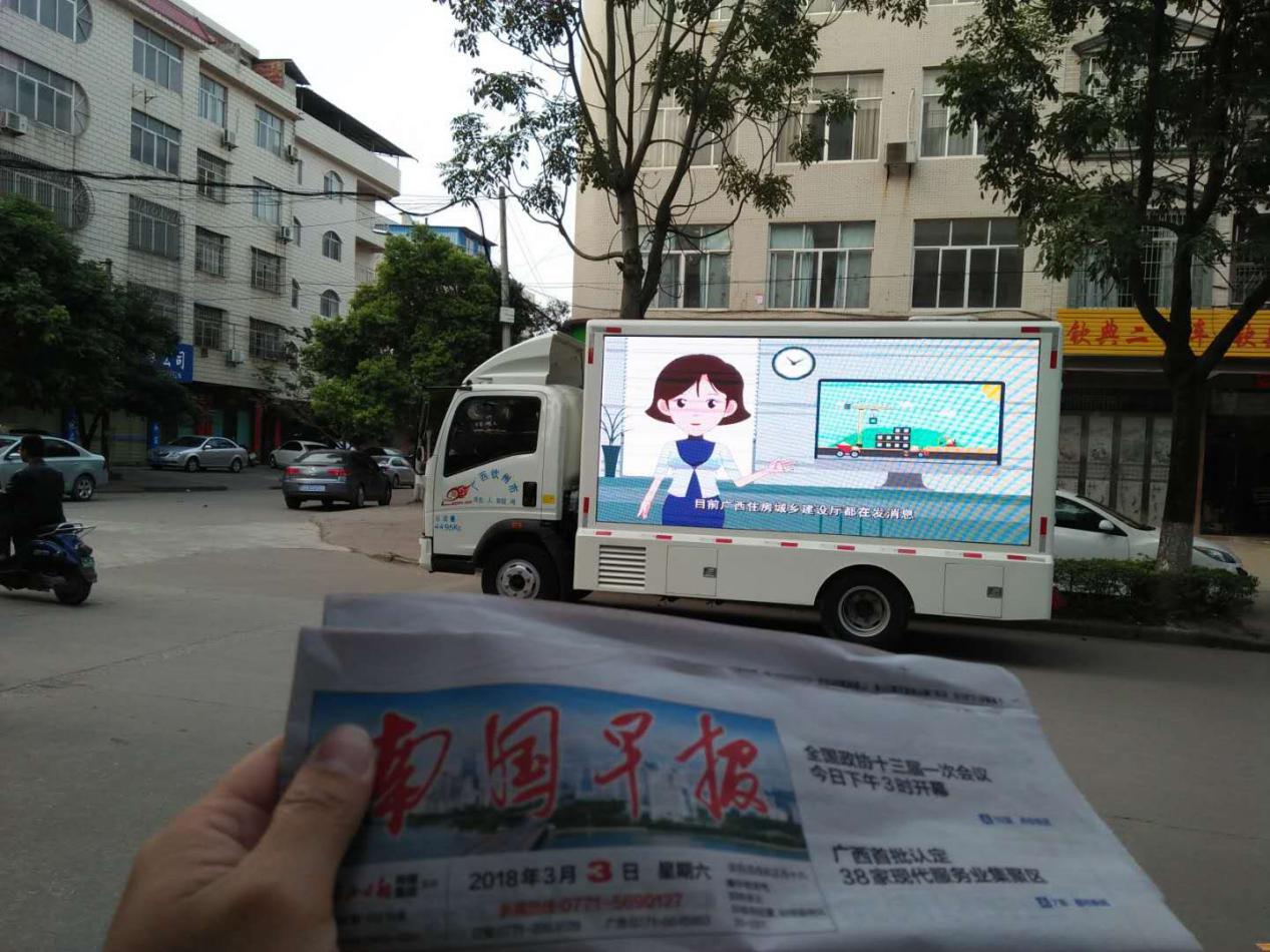 图2:钦州市通过移动LED宣传车播放住房保障宣传短片。