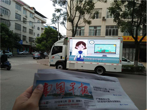 图2:钦州市通过移动LED宣传车播放住房保障宣传短片。